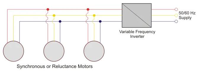 在這種方法中,同步電動(dòng)機(jī)由變頻器以開(kāi)環(huán)方式提供。所謂開(kāi)環(huán),是指沒(méi)有反饋到電源。逆變器沒(méi)有有關(guān)轉(zhuǎn)子當(dāng)前位置的信息。當(dāng)不需要高精度的速度控制時(shí),這種方法是可取的。來(lái)自電網(wǎng)的電源被饋送到整流器逆變器裝置中,在此處可獲得所需的頻率。根據(jù)頻率,可以改變電動(dòng)機(jī)的同步速度。