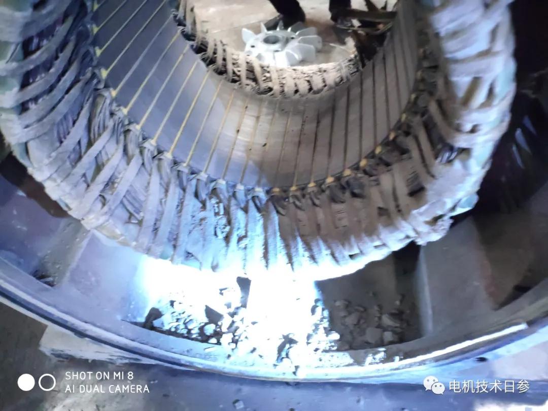 在故障電機(jī)的處理和分析過程中,發(fā)現(xiàn)IP23電機(jī)的繞組被污染和損壞,電機(jī)的繞組部分被灰塵覆蓋,特別是一些帶有導(dǎo)電材料的灰塵,對(duì)繞組的侵蝕更加嚴(yán)重。當(dāng)電機(jī)繞組被灰塵覆蓋時(shí),繞組的散熱會(huì)受到嚴(yán)重阻礙。當(dāng)灰塵中有導(dǎo)電物體時(shí),也會(huì)導(dǎo)致電機(jī)繞組接地、相間擊穿等質(zhì)量故障。如果灰塵進(jìn)入定子和轉(zhuǎn)子之間的氣隙,或者進(jìn)入軸承系統(tǒng),也可能導(dǎo)致電機(jī)掃膛的問題。