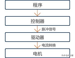 程序控制器(脈沖信號(hào))驅(qū)動(dòng)器(電流轉(zhuǎn)換)電機(jī)