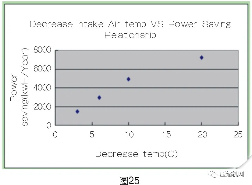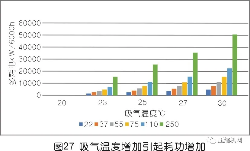 空壓機進(jìn)氣溫度越高,其耗功也越高;(見圖23)