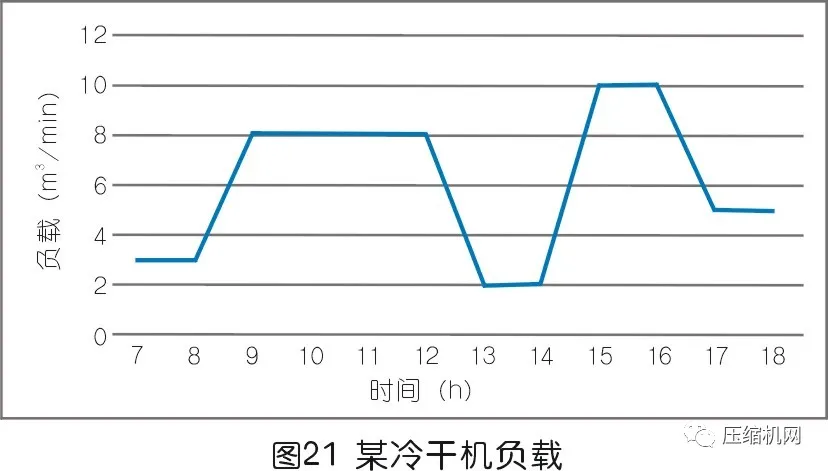 例3,某工廠配置一臺10m3/min冷干機,一天工作的平均負(fù)載情況如圖19。