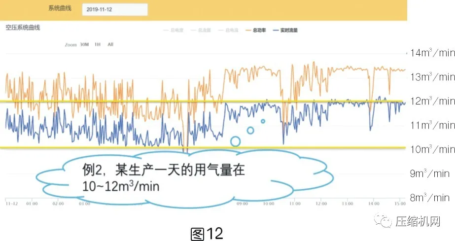 例2,某生產(chǎn)線一天的用氣量在10~12m3/min,見圖12。