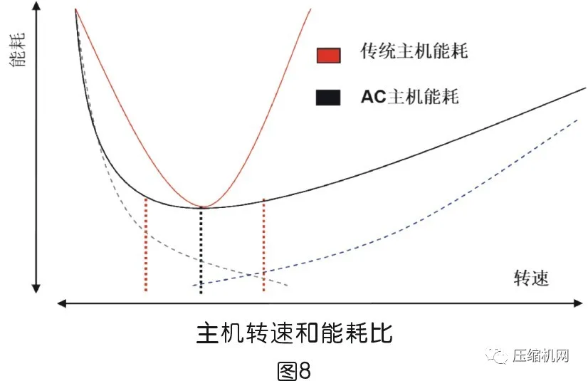 ③所以,當(dāng)空壓機工作在最佳主機轉(zhuǎn)數(shù)時,最節(jié)能(曲線最低點)。