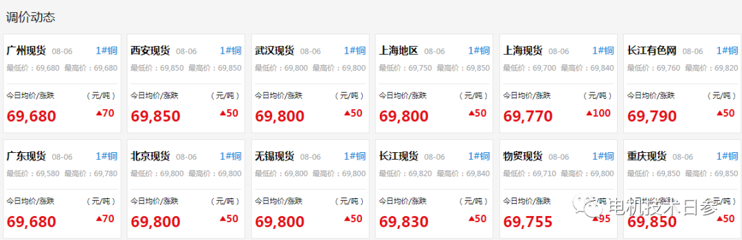 2021年8月6日,從長(zhǎng)江銅網(wǎng)獲悉,電磁線用1#電解銅價(jià)格仍處于高紅狀態(tài),各地期貨每噸上漲50-95元。