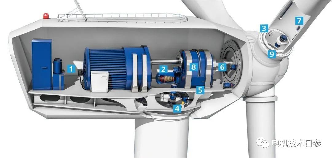 嚴格來說,減速驅(qū)動應該叫變速驅(qū)動。典型的例子是齒輪箱,這是風力渦輪機極其重要的核心部件。從發(fā)電機側看,電機輸出軸的高速由變速箱轉(zhuǎn)換為低速,以匹配葉片的低速,其結構和工作原理與傳統(tǒng)減速器并無不同。從葉片端開始,葉片的低速和高扭矩通過變速箱轉(zhuǎn)化為輸入到電機軸上的高速和低扭矩(相對于葉片端的高扭矩),變速箱是增速器。因此,風力發(fā)電機的齒輪箱是傳統(tǒng)意義上的減速器,原理相同,但速比范圍大得多,可靠性要求也高得多,主要涉及軸承、齒輪等關鍵零部件的材料和加工等諸多前沿技術,以及與偏航控制相關的復雜機構。