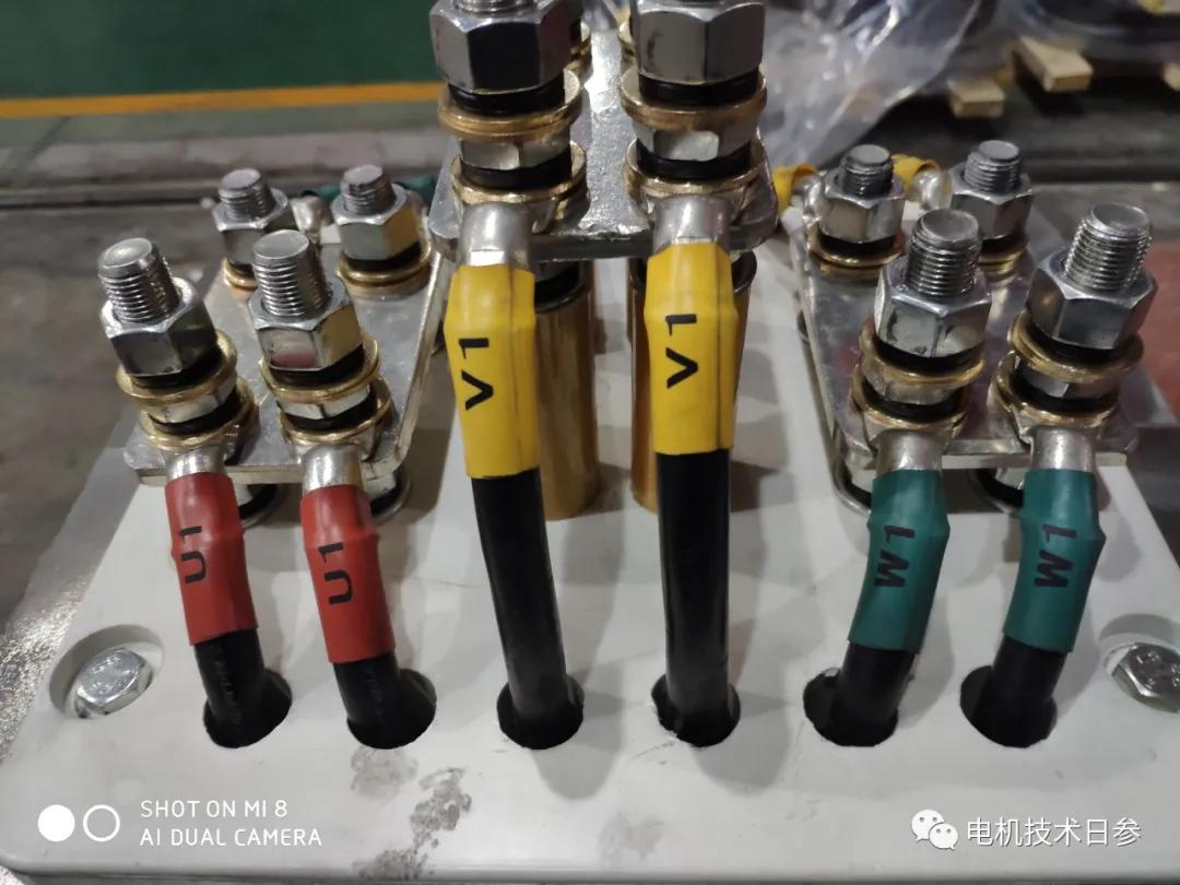 首先,我們從電機本體的引入線切入,看看各種復(fù)雜問題是如何推導(dǎo)出來的。三相繞組每相末端有兩個頭,共六個頭,通過引線電纜連接到具有內(nèi)部連接和外部連接功能的接線裝置(多為接線板結(jié)構(gòu)),確實不復(fù)雜。但是對于低壓大功率電機,電流很大。為了連接、引出和固定,每相至少必須并聯(lián)三、四根適當(dāng)厚度的引線電纜,以解決生產(chǎn)加工過程中的工藝問題。由于同時連接了如此多的連接電纜,因此產(chǎn)生了不同類型的接線板或接線裝置,并且接線裝置必須具有相應(yīng)數(shù)量的端子或端子。至少三根或四根內(nèi)部電纜并聯(lián)對應(yīng)的客戶端是否有相同數(shù)量的出線電纜匹配?顯然,客戶不會容忍數(shù)量近乎密集的并聯(lián)方式,端子板或接線裝置必須配備集電桿,以滿足客戶接入的有限數(shù)量的出線電纜。通過與客戶溝通,確定出線電纜的規(guī)格、型號和數(shù)量,在接線盒或接線裝置上設(shè)計合適數(shù)量和孔徑的進線孔,配置與出線電纜外徑相匹配的通孔直徑的電纜連接器是安全的。接線盒或接線裝置上的集電器配有專門用于客戶接線的端子。