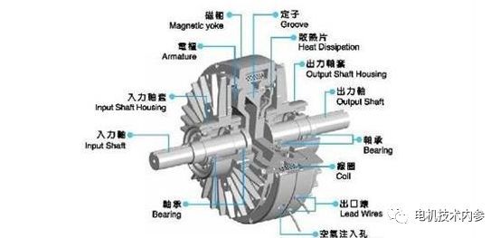 在電磁調(diào)速的的核心是電磁滑差離合器中,極性相對(duì)固定、N極和S極交替分布的爪極在異步電機(jī)的驅(qū)動(dòng)下旋轉(zhuǎn),固體電樞的磁力線被切割而感應(yīng)出渦流,在爪極磁場(chǎng)的作用下旋轉(zhuǎn),驅(qū)動(dòng)輸出軸輸出機(jī)械動(dòng)力。通過調(diào)節(jié)爪極勵(lì)磁電流,可以調(diào)節(jié)渦流磁場(chǎng)與爪極磁場(chǎng)的耦合程度或速度差,從而實(shí)現(xiàn)調(diào)速。如果固體電樞的轉(zhuǎn)速與爪極磁場(chǎng)的轉(zhuǎn)速同步,就不可能感應(yīng)出渦流,固體電樞就失去了旋轉(zhuǎn)的原動(dòng)力——電磁力,所以也叫電磁轉(zhuǎn)差調(diào)速電機(jī)。不難想象,這種電機(jī)是一種組合結(jié)構(gòu),主要由拖動(dòng)電機(jī)、電磁滑差離合器和測(cè)速發(fā)電機(jī)組成。測(cè)速發(fā)電機(jī)將轉(zhuǎn)速信號(hào)反饋給控制器,與控制器設(shè)定的轉(zhuǎn)速進(jìn)行比較,并發(fā)出指令增加或減少固體電樞的轉(zhuǎn)速。