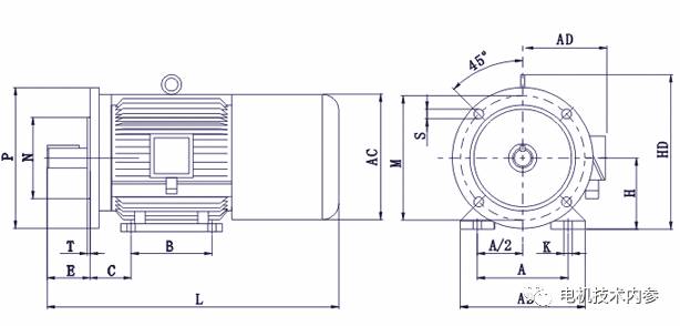 安裝方法見簡述B3、B5、B35均為水平安裝。主要區(qū)別是B3安裝有底座,B5安裝有法蘭端蓋,B35安裝有底座和法蘭端蓋。